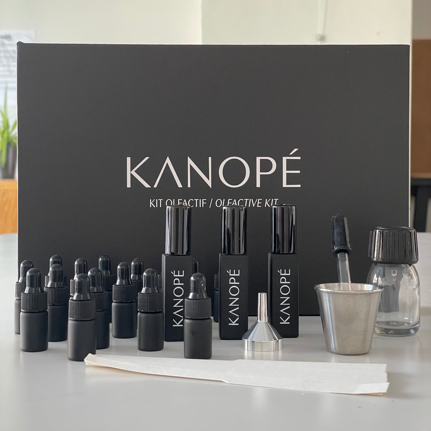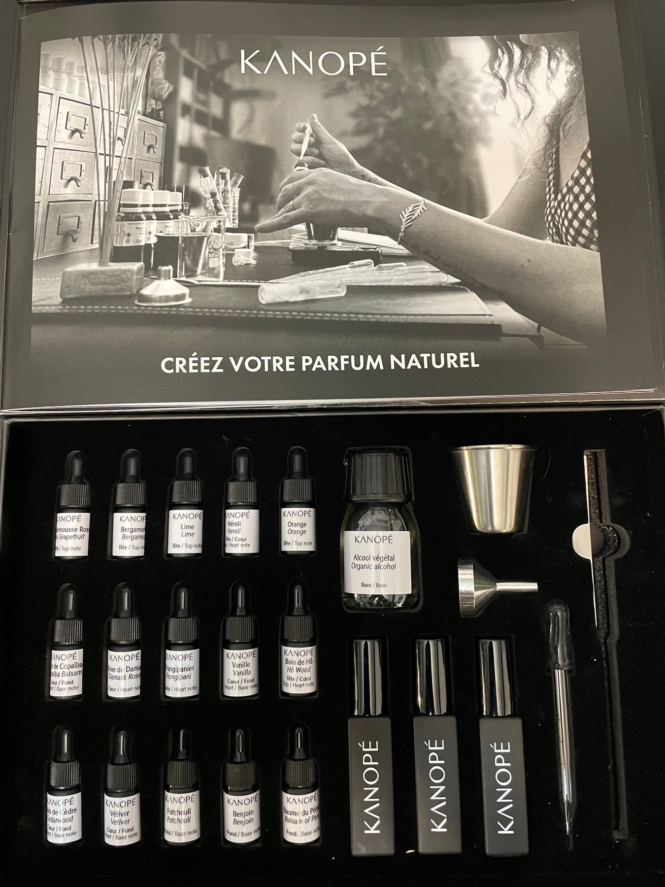 • All the tools you need: a funnel to bottle your creations, three empty perfume bottles, a dilution base, labels to name and date your blends, and olfactory blotter strips to test and refine your compositions.