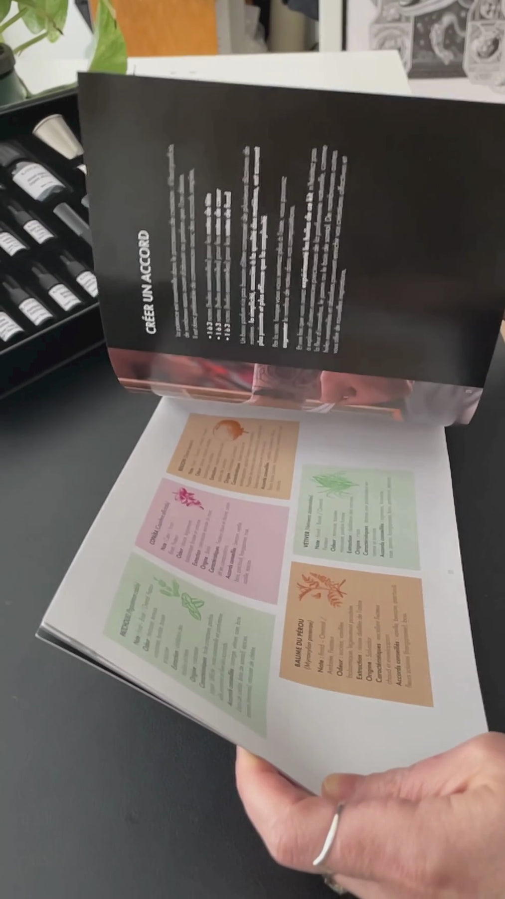 • A 40-page creative guidebook (available in English or French) that walks you through the perfume creation process, introduces each essential oil from the kit, and offers 10 inspiring formulas to help you begin crafting your first natural perfume with confidence.